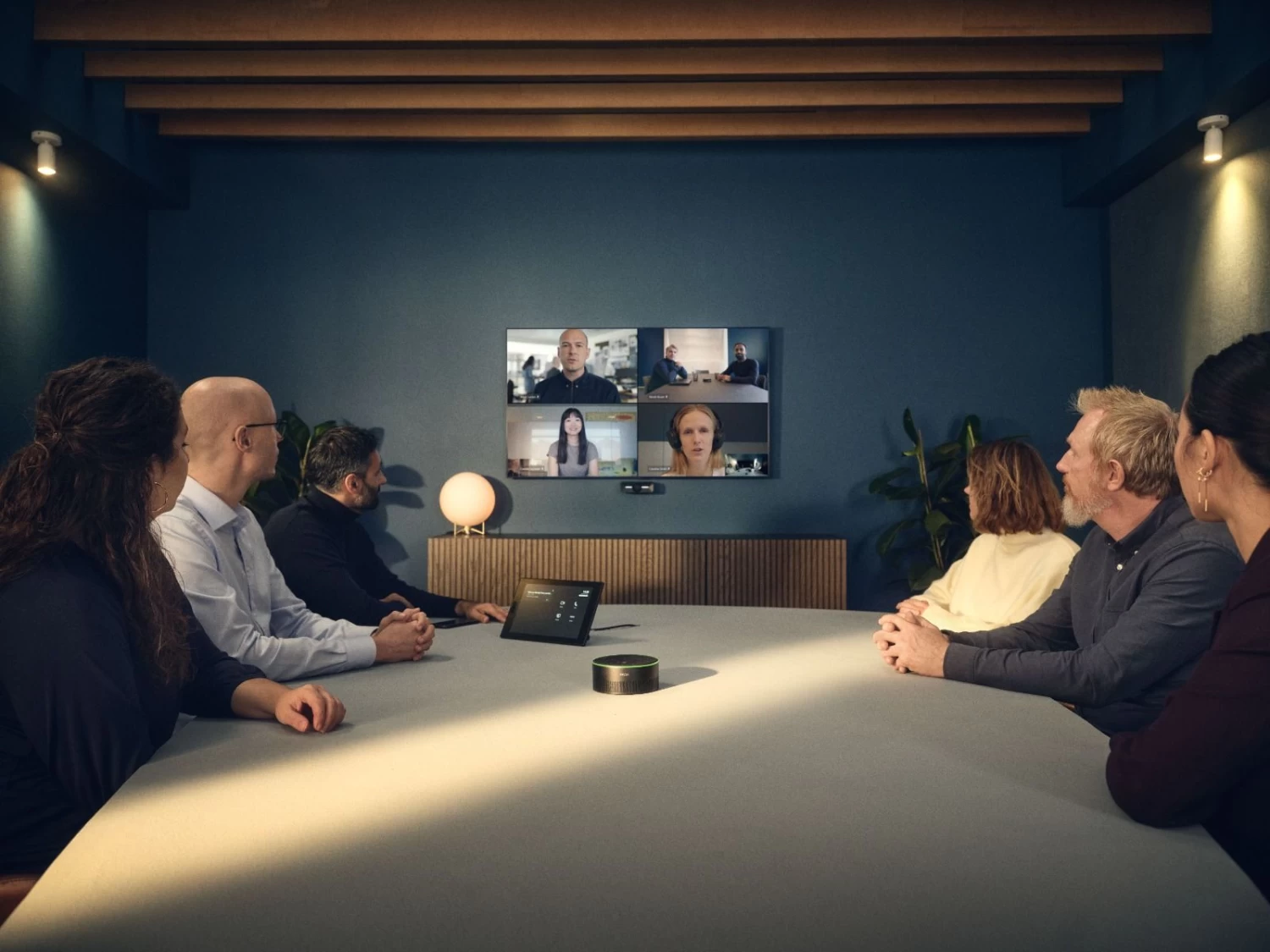 - Look professional on any video call with a 4K camera and intelligent picture framing that captures all in- room partocipants