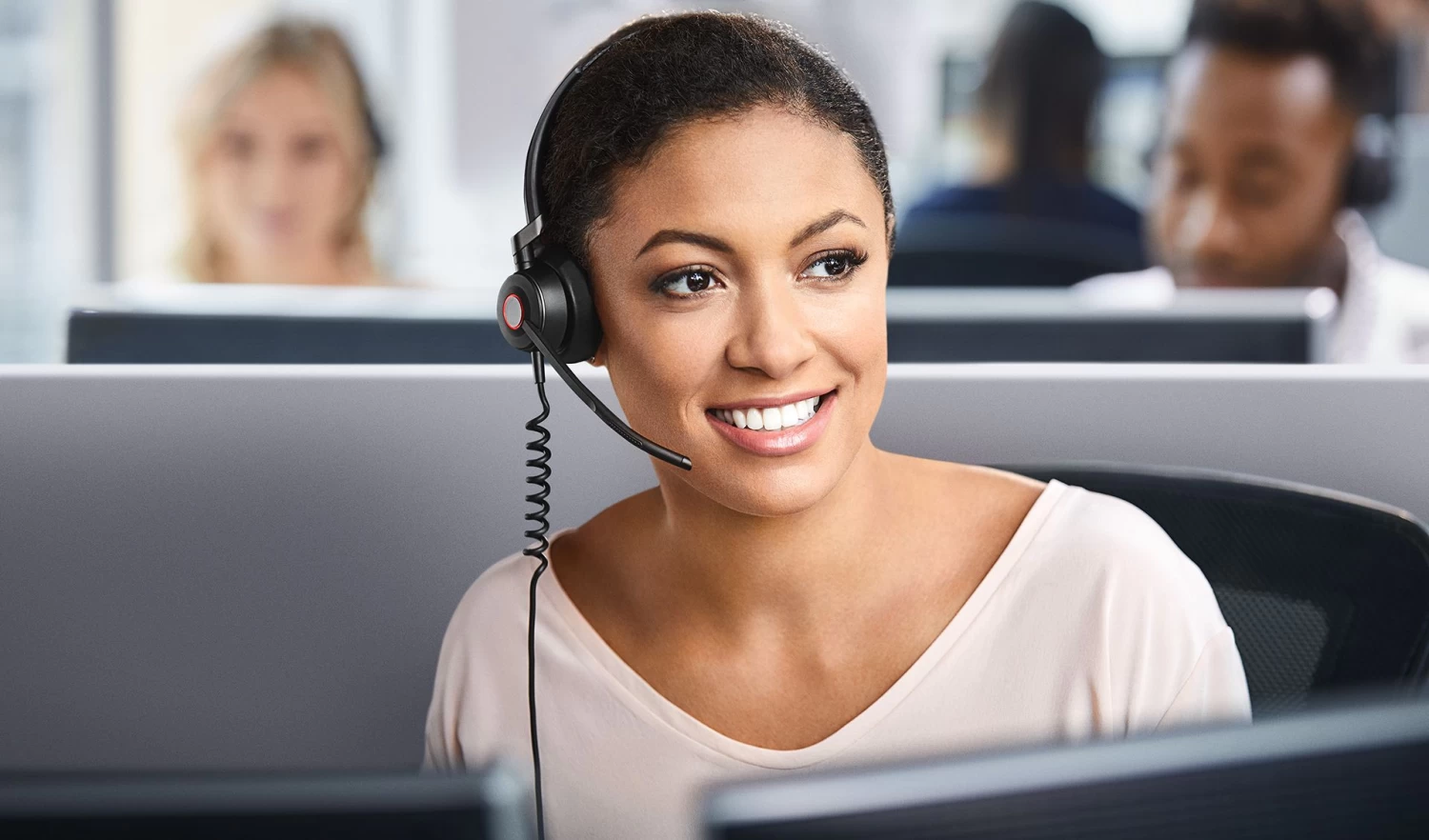 A unique, 3-microphone system filters out background noise and breathing sounds, giving callers a superior experience. Stereo sound and super wideband give vibrant, lifelike onversations – with the highest levels of hearing protection for agents.