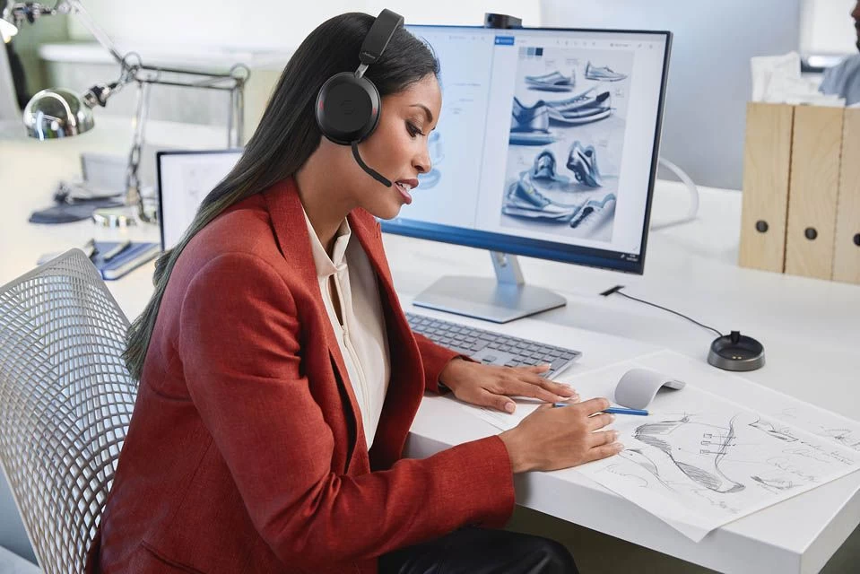 Clients will hear you loud and clear with ‘eight precision-placed microphones and a revolutionary triple chipset powered Jabra algorithm filter out the noise around you’. Indeed the Evolve2 75 meets the rigorous standards of Microsoft’s Open Office requirements.