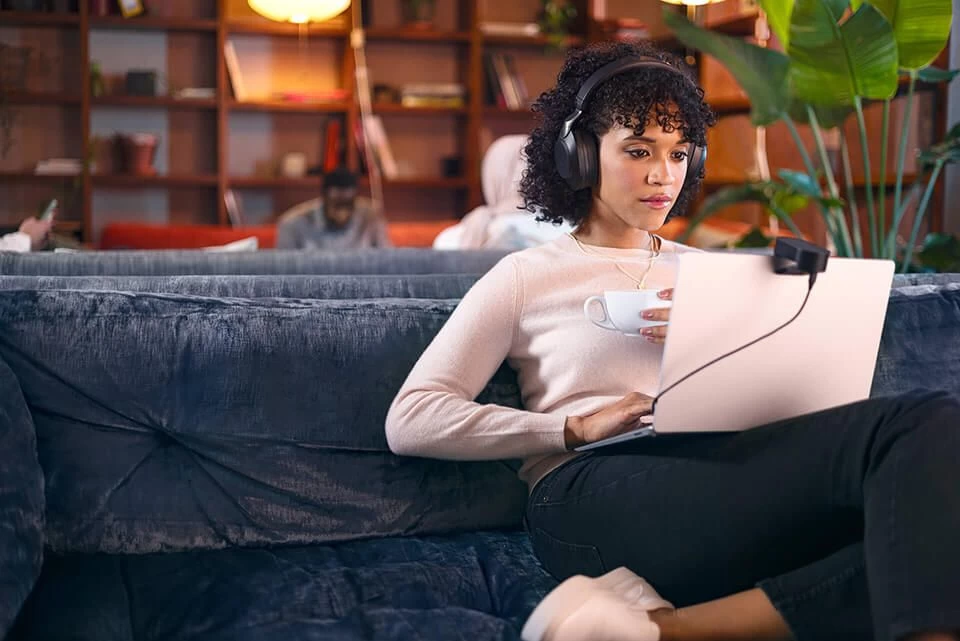 Soundproof your ears. Whether you’re working in the office or on the go, background noise can really disrupt your flow. Put on your Evolve2 65 and feel the noise around you instantly fade, as the isolating foam oval ear cushions and pioneering new angled earcup design work to effectively block out your surroundings, giving you passive noise‐cancellation like you’ve never experienced. You could say it’s like a portable quiet room for your head.