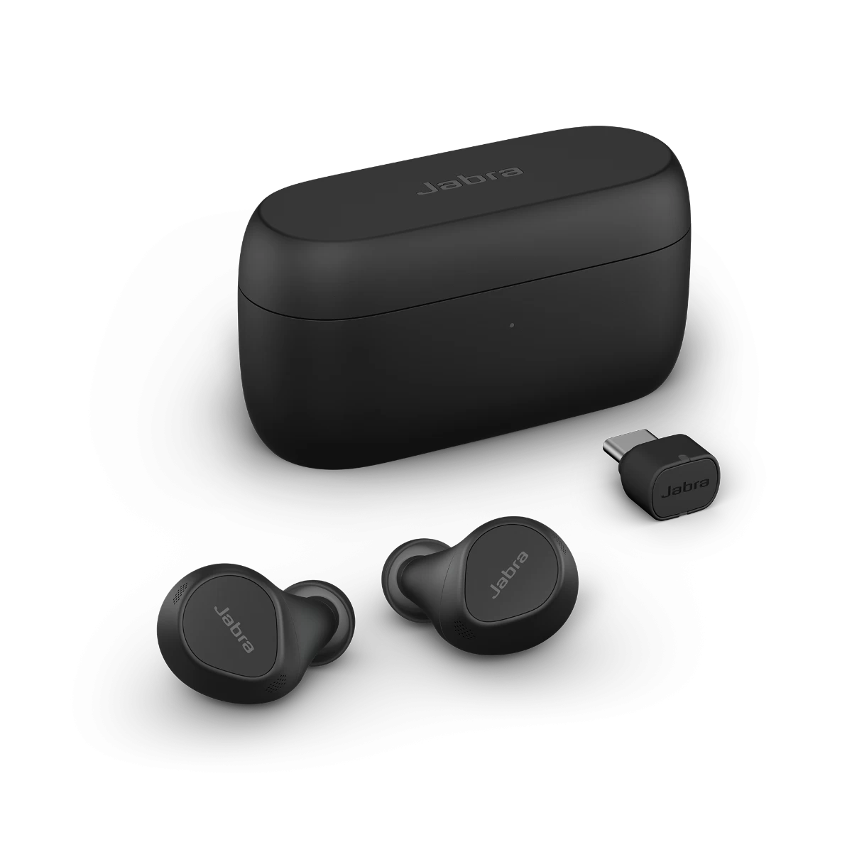 Jabra’s business level earbud style offering. Small and discrete, and they don’t fall out of your ears! Includes Active Noise Cancelling (ANC) to help you focus on the task at hand and block out external noise, as well as heathrough to let the noise back in when you need. Also has a super convenient quick charge function. Comes with a case which protects and charges the buds and keeps the dongle secure. Use with PC/Mac via USB dongle and Bluetooth devices such as mobile or tablet (NB not USB deskphones). Dongle type dictates charging connection but the USB-C version also includes a USB-A to C adapter. Launch Date – October 2022