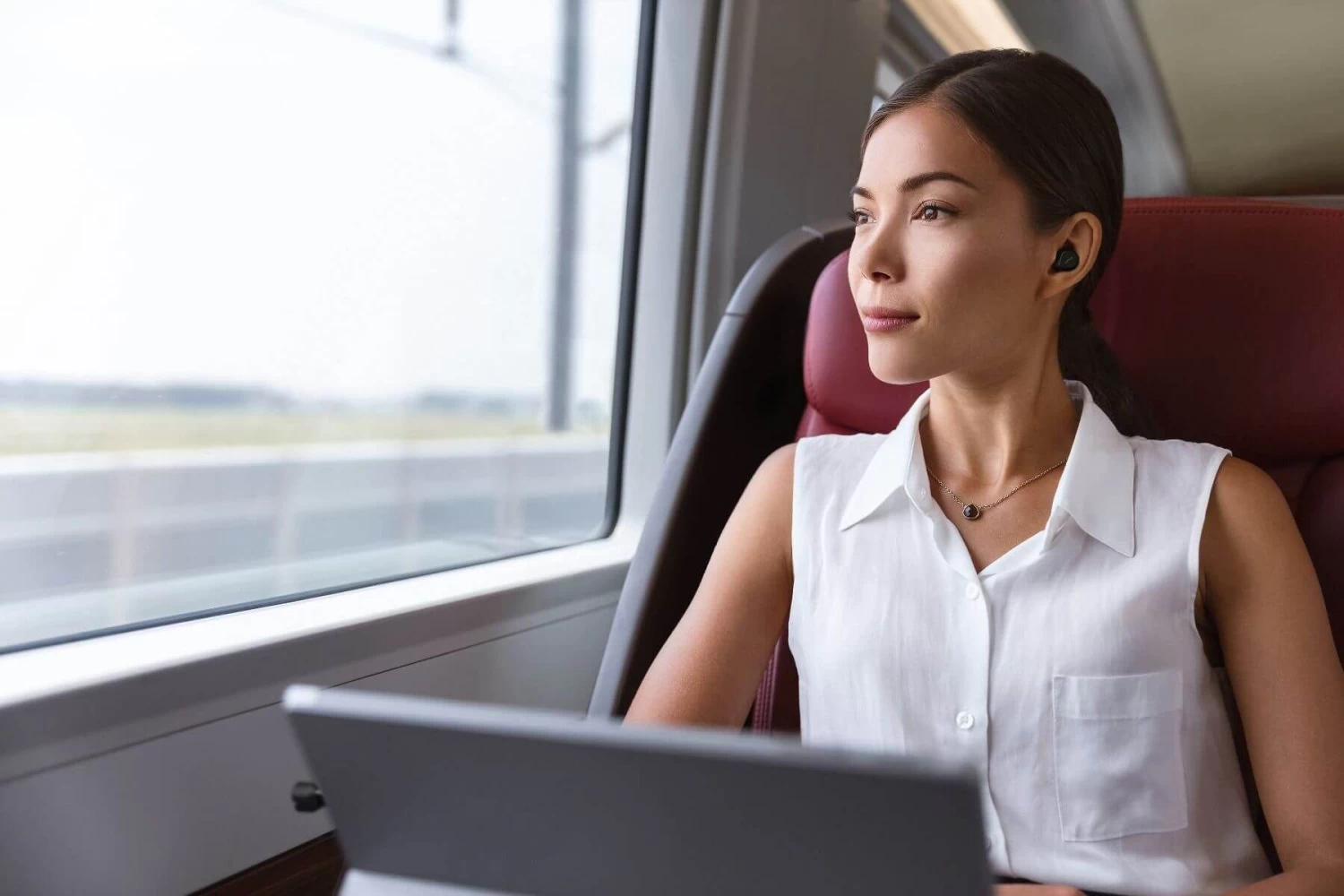 Free yourself from the headband! Not everyone likes a headband, not everyone likes the strange white sticks that Apple airpods have (they just look so odd!!). The Evolve2 Buds are discrete and lightweight.   Jabra model their earbuds on thair database of 62,000 ear shapes so you should be OK for fit unless you have funny ears (no judgement)  A word from our Sophie – a long time Jabra earbud style user; As you put them in, you turn them so they push gently against the cartilage of your ear, making them feel really secure. I can’t use aipods, they just wobble about and fall out of my ear . Jabra’s style are the only earbud I’ve tried that stays in. I love em!!
