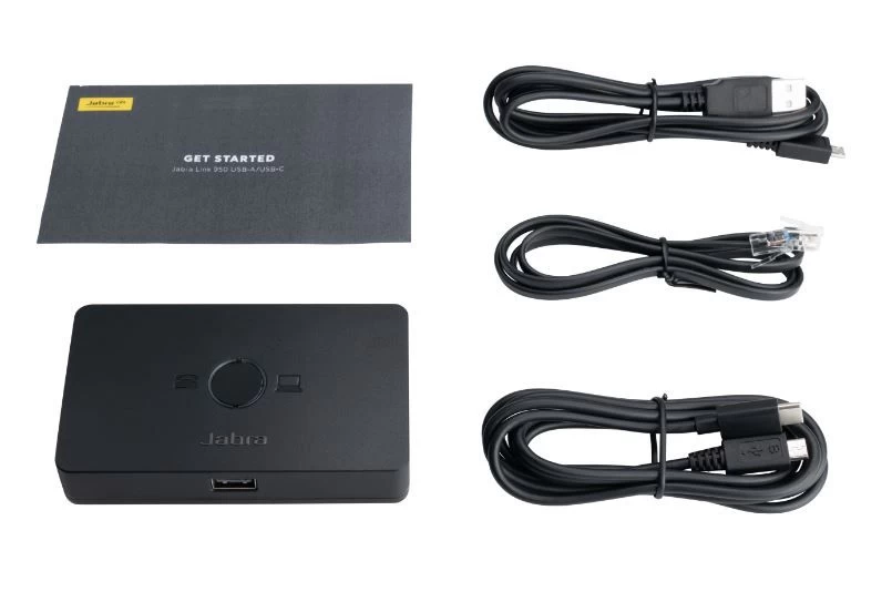 The Jabra Link 950 is simple to set up and has a small, unobtrusive footprint on the desktop. To connect to your computer, use the USB-A or USB-C cables that are both supplied. To connect to your deskphone, use the cables included (It has an RJ, phone style cable so call us for the right solution if your phone has a 2.5mm headset port). Easy call management enables you to seamlessly switch between phone devices at the touch of a button. Incoming calls are automatically directed to the phone receiving the call. Central management of USB headsets is easy using Jabra Xpress..