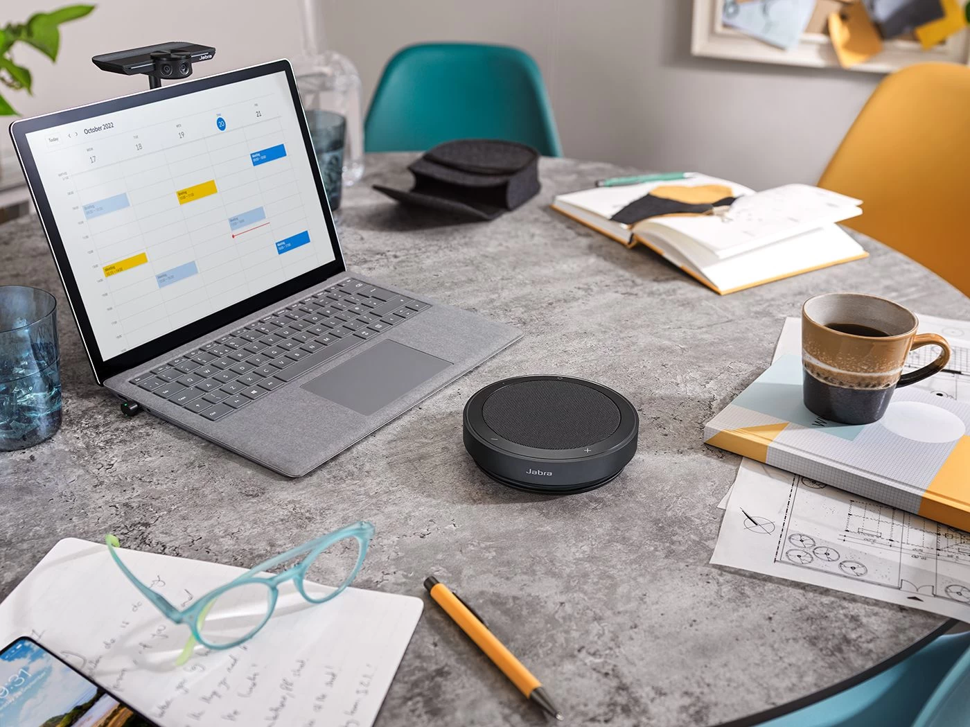 Somebody pops their head round the door and interrupts? Jabra’s innovative noise reduction tech keeps background distractions at bay.