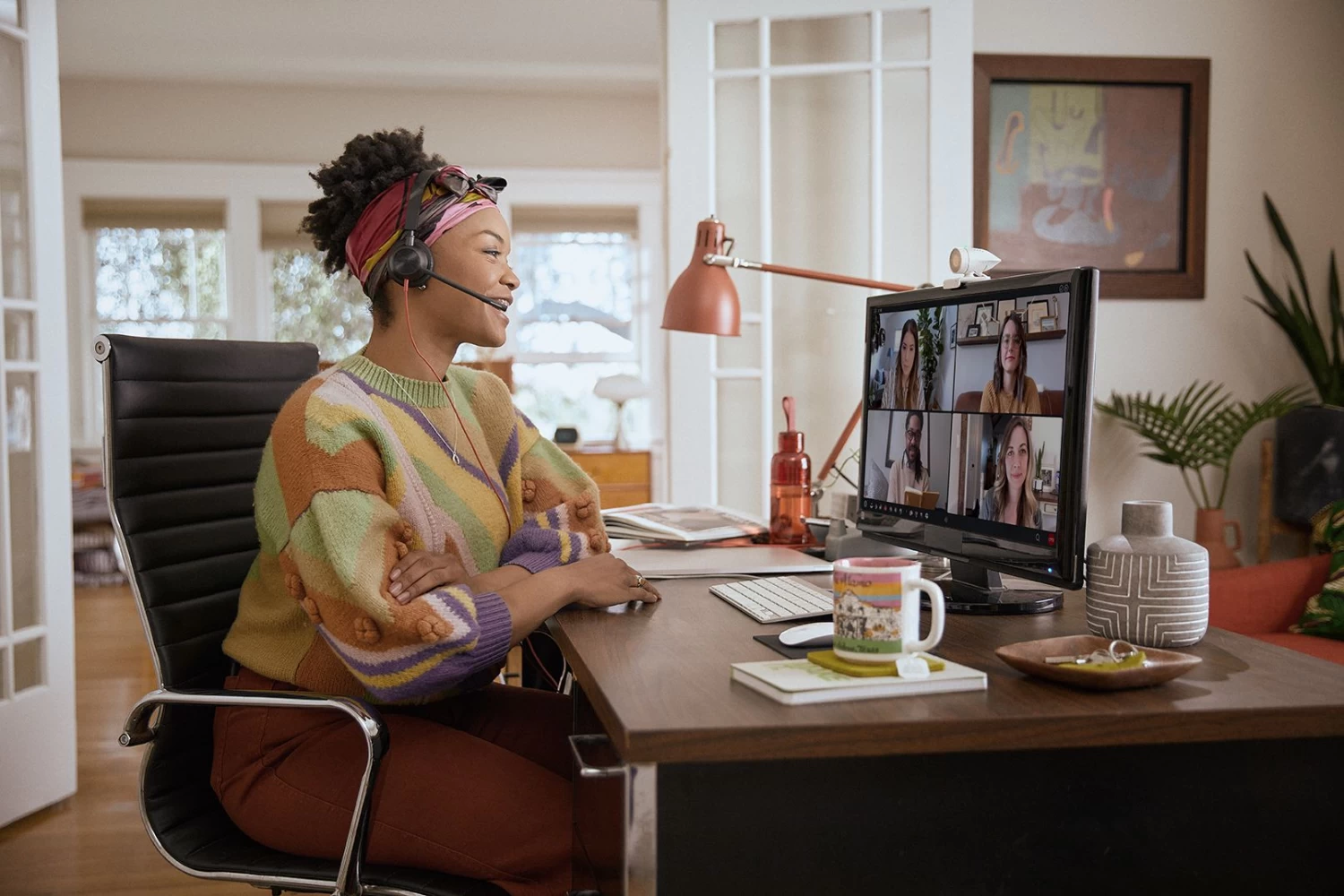The camera optics that are optimized for video conferencing, help with improving proper light exposure and even in darker rooms with automatic low-light compensation. Be confident you are seen clearly with amazing colors designed to show you at your best, and make sure you’re heard clearly with a built-in directional microphone.
