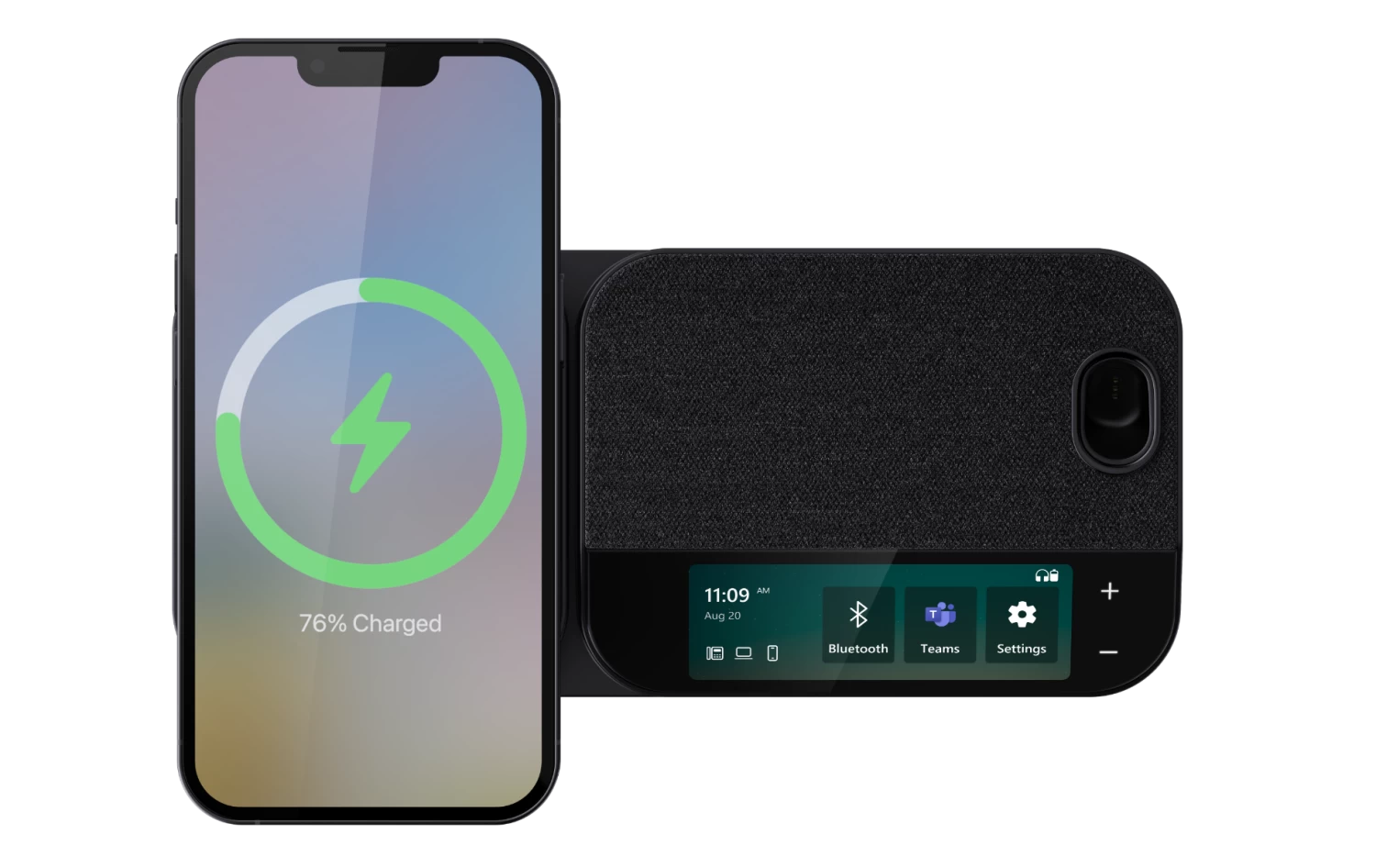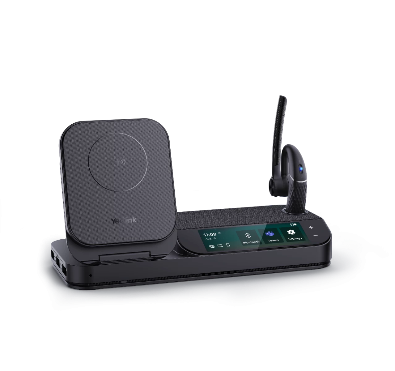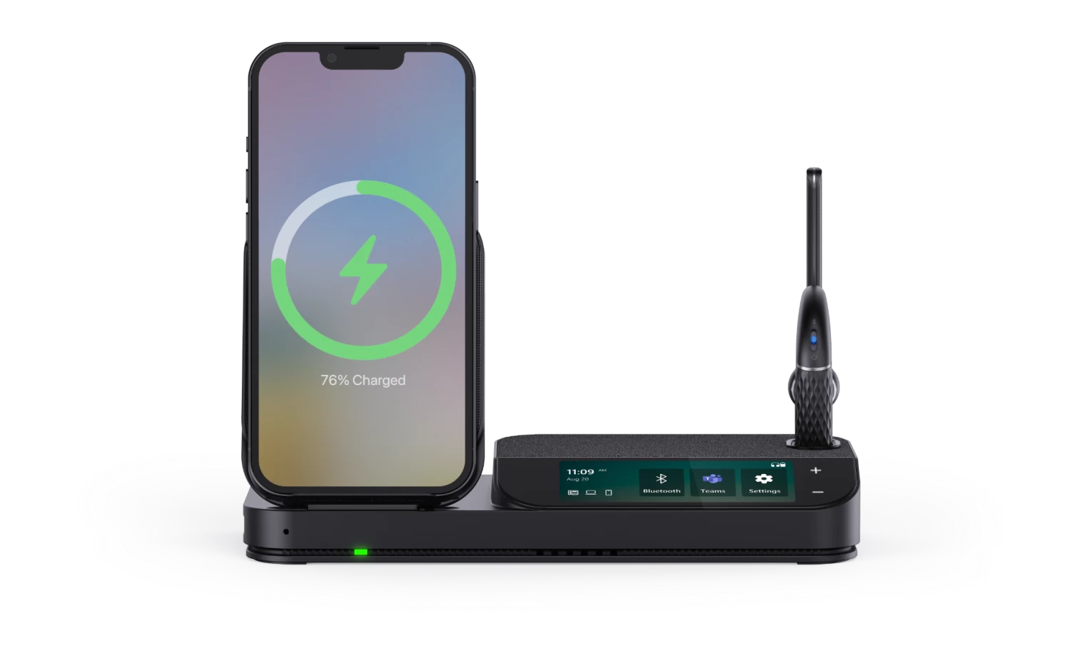 + 3-inch touch screen, built-in speakerphone, 3 USB 3.0 ports, and Qi wireless charger on the station contribute to a stylish and clutter-free workspace.